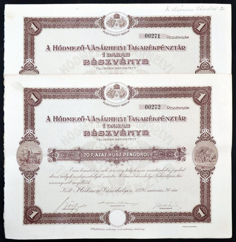 Hódmezővásárhely 1926. "Hódmező-Vásárhelyi Takarékpénztár" részvényi 2...