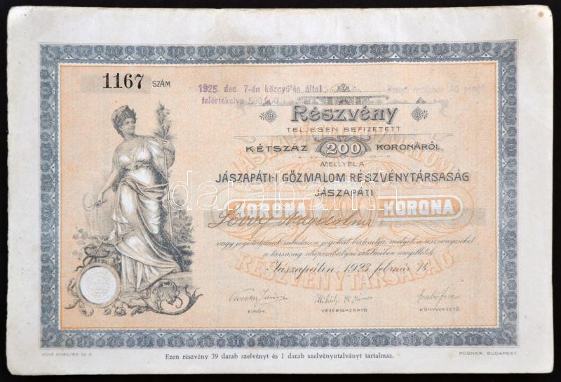https://www.darabanth.com/en/236-Online-auction/236.0/Numismatics/Shares-and-Tickets~200005/Jaszapati-1923-Jaszapati-Gozmalom-Reszvenytarsasag-reszvenye-200K-rol-szelvenyekkel-~II1085660