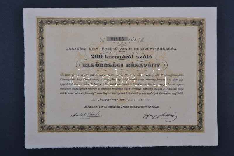 https://www.darabanth.com/en/236-Online-auction/236.0/Numismatics/Shares-and-Tickets~200005/Jaszladany-1911-Jaszsagi-Helyi-Erdeku-Vasut-Reszvenytarsasag-200K-rol-szolo-elsobb~II1085670