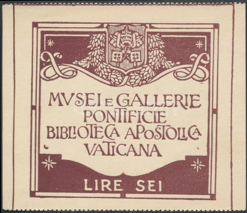 1937 Musei e gallerie Pontificie Biblioteca Apostolica Vaticana, Vatikáni múzeum, ill. könyvtári belépő, litho, 8x9cm