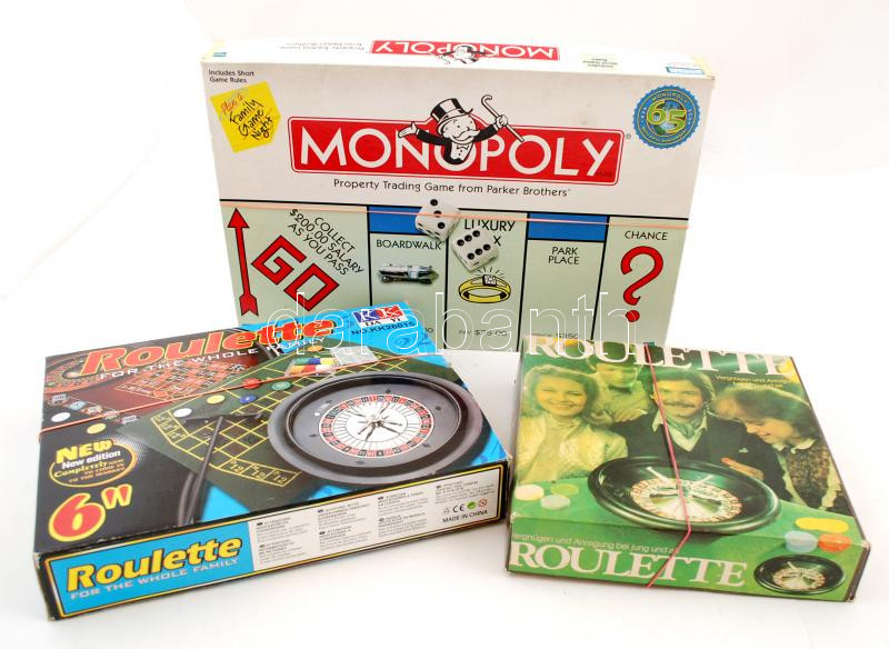 Társasjáték tétel: Monopoly + 2 rulett, saját dobozaikban, nem teljes
