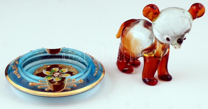 Kis medvebocs, kétszínű üvegből, kék asztali hamutartó, hibátlanok, 8x...