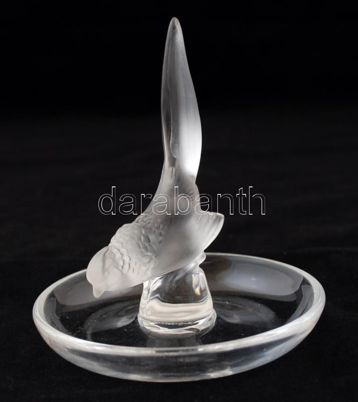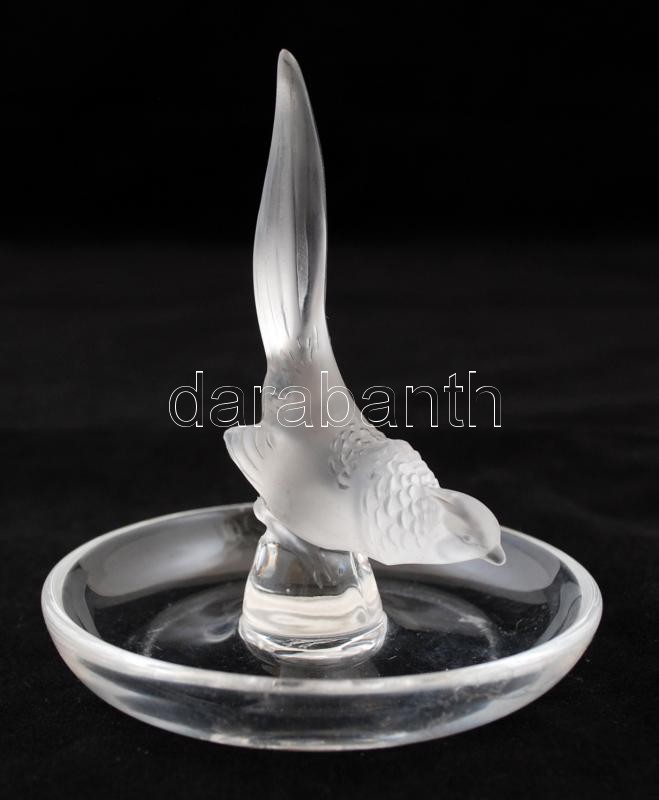 Lalique kristály gyűrűtartó, formába öntött, jelzett, apró csorbával, ...