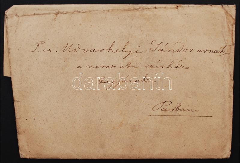 1863 The handwritten letter of Sámuel Radnótfáy Nagy (1803-1869) court councillor, the intendant of the National Theatre (1862-1869) sent to the Hungarian actor and singer Sándor Udvarhelyi (1815-1885) about the sending of his contraction for the next theatrical year, with the contraction itself, in an envelope, with vax seal on it