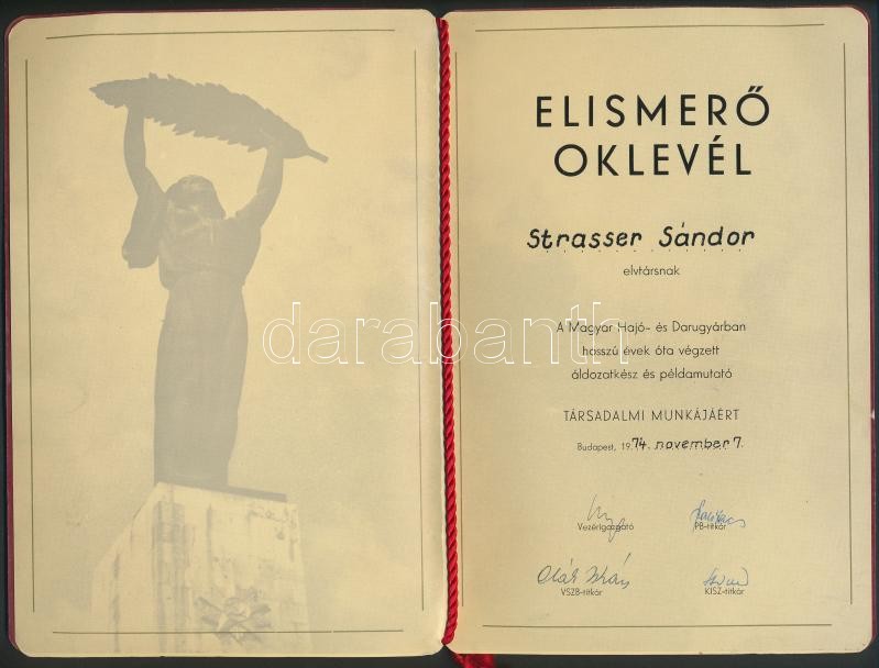 https://www.darabanth.com/en/236-Online-auction/236.0/Other-collectibles/Printed-Materials~400007/1974-Elismero-Oklevel-A-Magyar-Hajo-es-Darugyarban-hosszu-evek-ota-vegzet-aldozatkesz-C3~II1082800