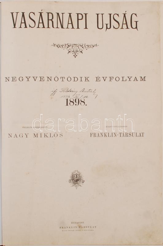 1989 Vasárnapi Ujság. Negyvenötödik évfolyam. 1898. Összes kiadványa r... https://www.darabanth.com/en/236-Online-auction/236.0/Other-collectibles/Printed-Materials~400007/1989-Vasarnapi-Ujsag-Negyvenotodik-evfolyam-1898-Osszes-kiadvanya-regenytarral-egyutt-~II1050585