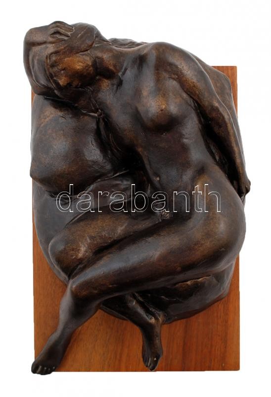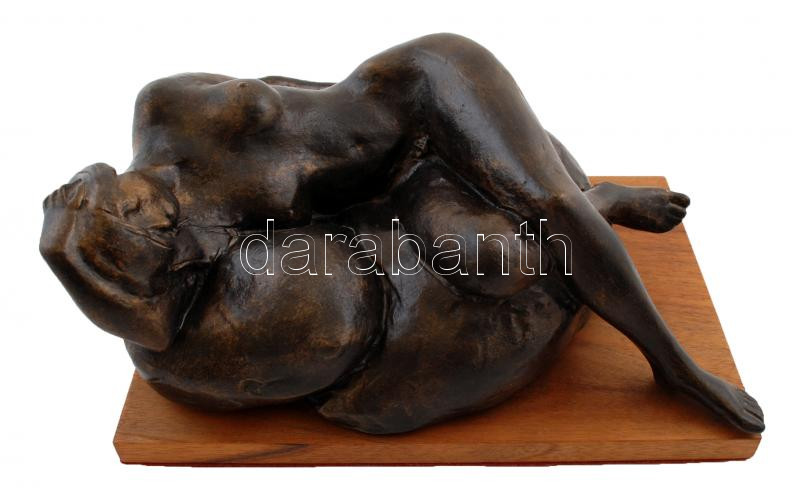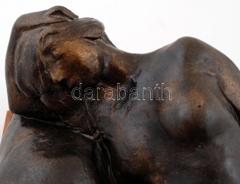 Jelzés nélkül: Fekvő akt. Bronzírózott műgyanta, fa talapzaton, 26×18 ...