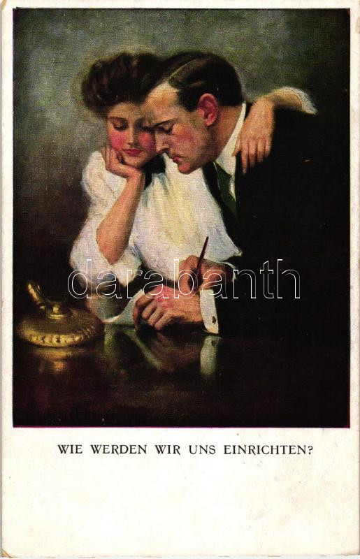 Description: 8 db RÉGI motívumlap Clarence F. Underwood szignójával, kiadja M. Munk Wien; romantikus párok művészlap / 8 old motive cards signed by Clarence F. Underwood, published by M. Munk; romantic couple art postcards