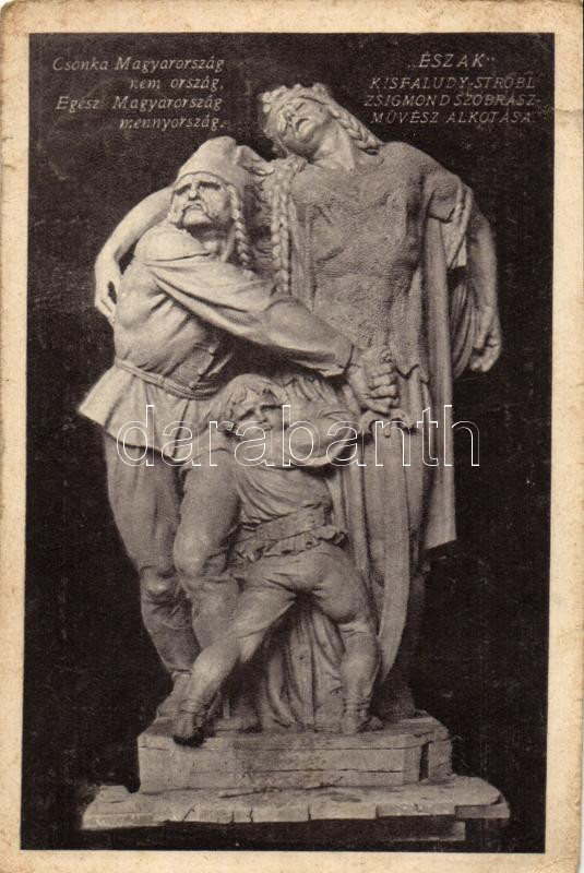 Budapest V. Szabadságtér, Irredenta szoborcsoport: Észak; Pesti Hírlap...