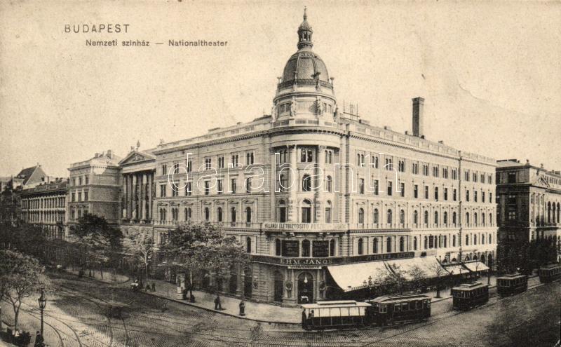 Budapest VIII. Nemzeti színház, Hollandi Életbiztosító rt. Ehm János étterme, villamosok (EB)
