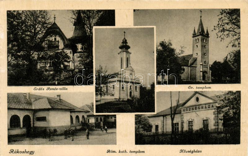 Budapest XVII. Rákoshegy, Erdős Renée villa, Községháza, községi iskol...
