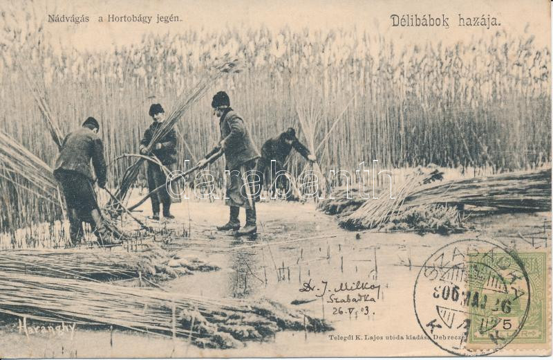 Hortobágy, Nádvágás a Hortobágy jegén, Telegdi K. Lajos kiadása, Haran...