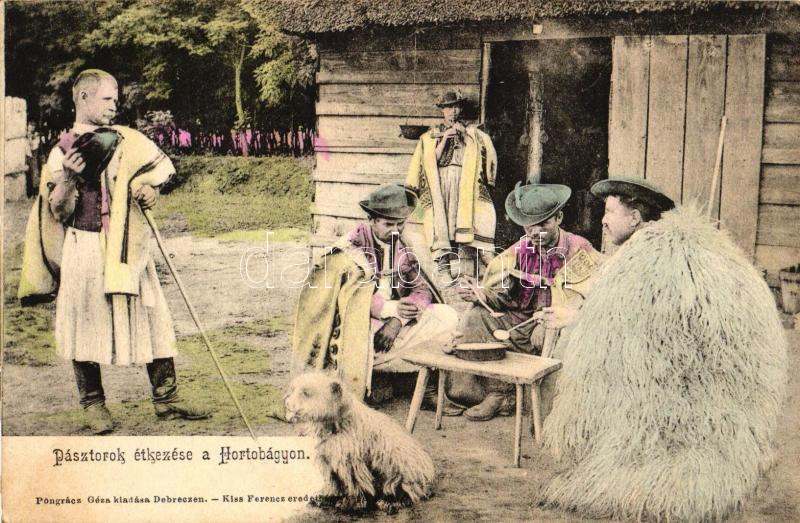 Hortobágy, pásztorok étkezése, folklór, Pongrácz Géza kiadása (fl)