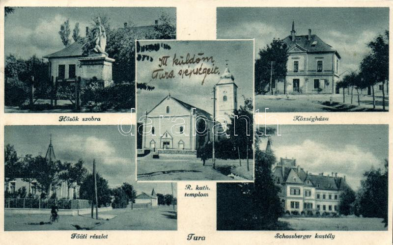 Tura, Hősök szobra, Községháza, Schossberger kastély, Fő út (EK)