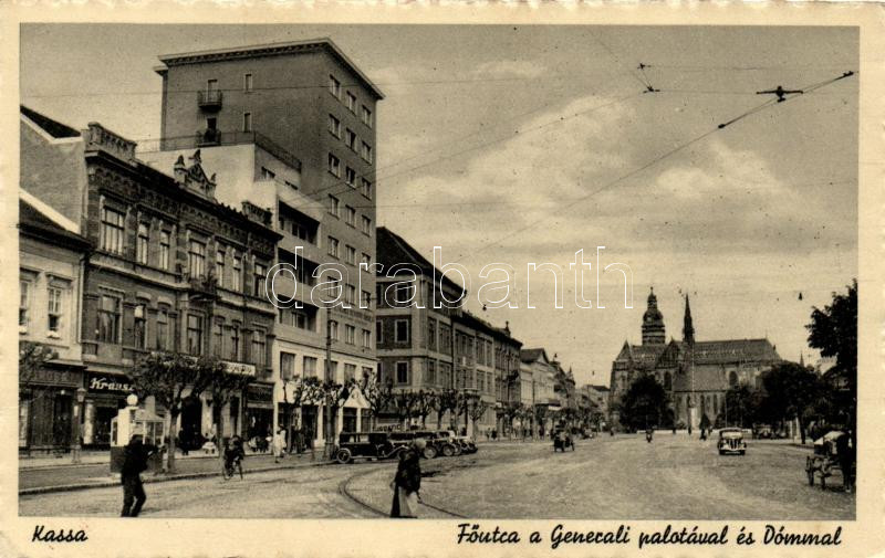 Kassa, Fő utca, Generali palota, Dóm, Krausz üzlete / main street, pal...