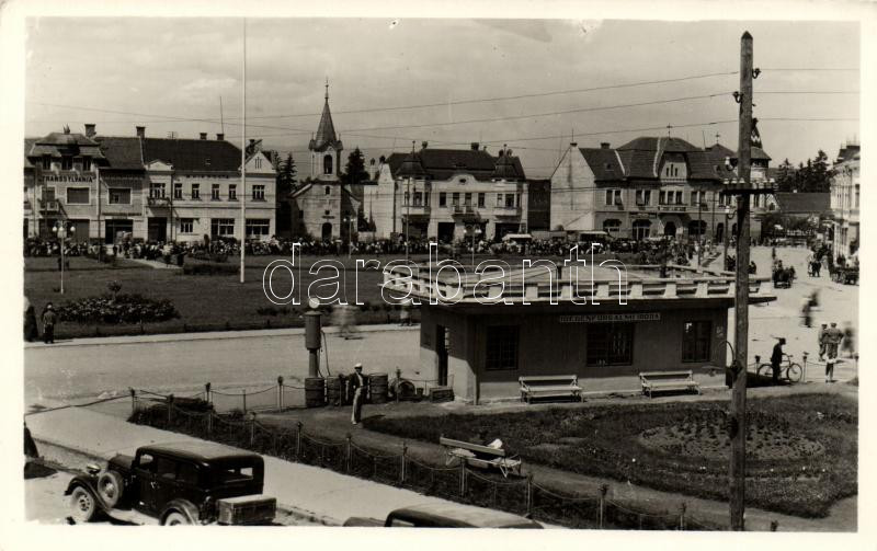 Gyergyószentmiklós, Fő tér, bank, gyógyszertár, Idegenforgalmi Iroda /...