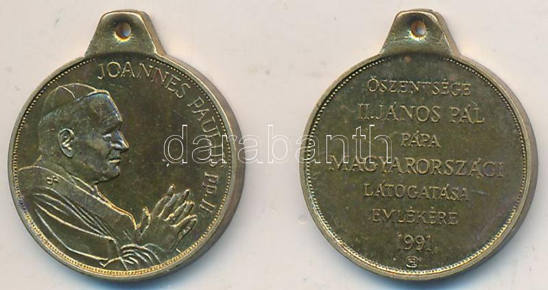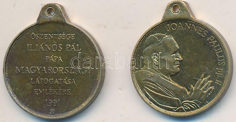 Fülöp Zoltán (1951-) 1991. "Őszentsége II. János Pál pápa magyarországi látogatása emlékére" fém emlékérem füllel (2x) (16mm) T:2,2-