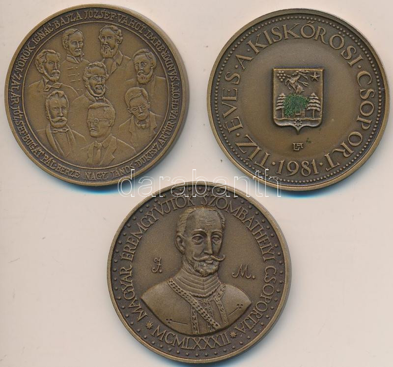 Kiss Sándor (1925-1999) 1982. "Magyar Éremgyűjtők Szombathelyi Csoportja - Kőszeg" Br emlékérem (42,5mm) + Lapis András (1942-) 1981. "10 éves a Kiskőrösi Csoport / Petőfi szülőháza" Br emlékérem (42,5mm) + 1984. "A Gyöngyösi Gimnázium fennállásának 350. évfordulójára" Br emlékérem (42,5mm) T:1,1-