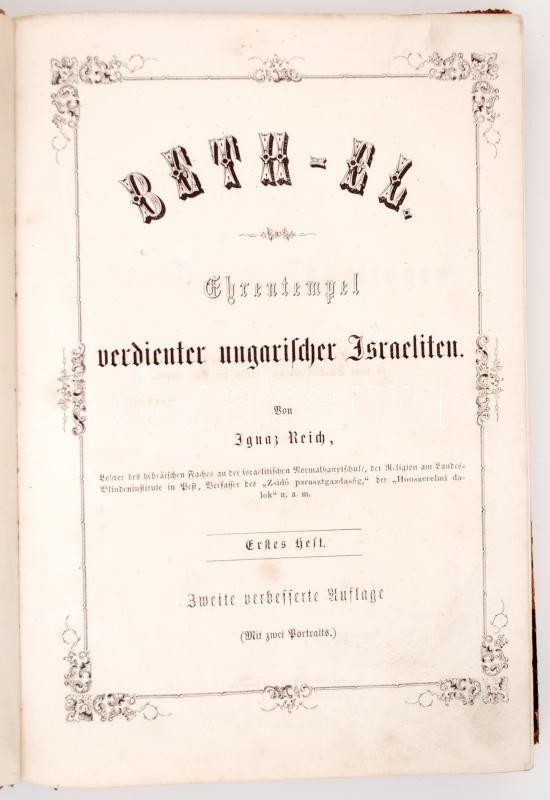 Reich, Ignaz: Beth-el. Ehrentempel verdienter ungarischer Israeliten. 1-2. köt. Pest, 1867, Druck von Alois Bucsánszky. Számos illusztrációval, kopottas bőrkötésben, egyébként jó állapotban.