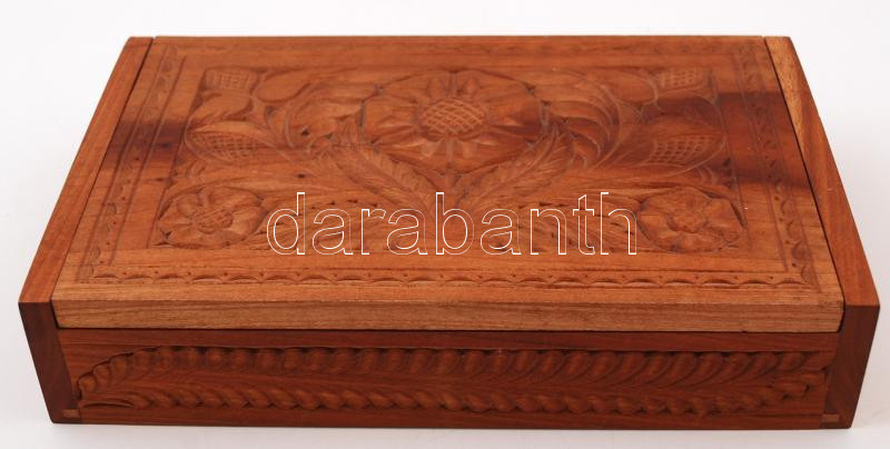 Faragott fa ládika / Carved wood box 24x16 cm