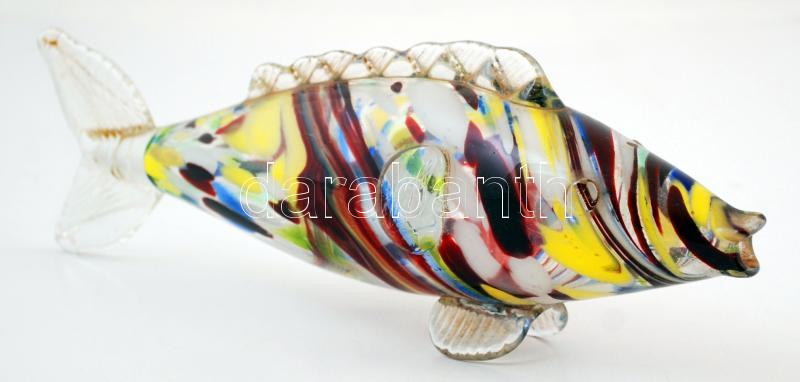 Kézzel fújt üveghal, több rétegű, hibátlan, h:28 cm
