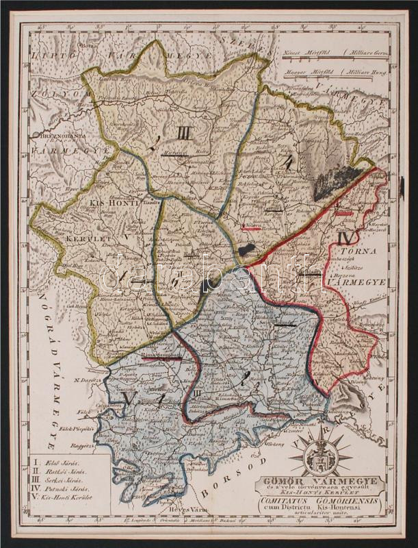 cca 1850 Gömör vármegye és a vele törvényesen egyesült Kis - Honti kerület térkép. (Comitatus Gömöriensis qum Districtu Kis - Hontensi articulariter unito)