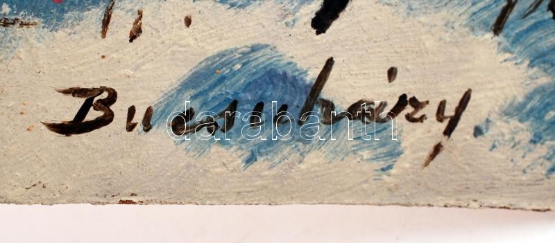 Bucsuházy jelzéssel: Hazafelé. Olaj, karton, sérült, 25×20 cm