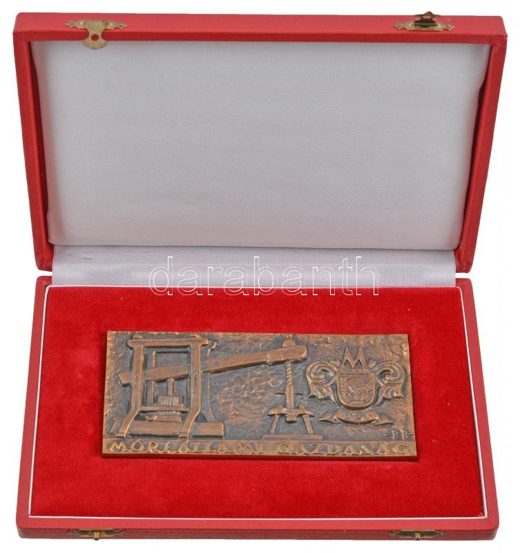 Búza Barna (1910-2010) 1949. "Móri Állami Gazdaság 1949" Br plakett eredeti dísztokban (133x63mm) T:2