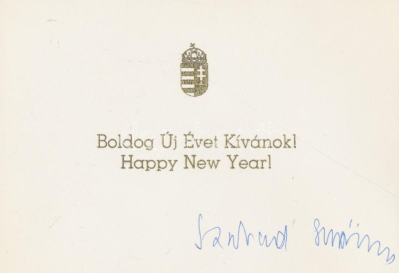 Szabad György (1924- ) történész, az Országgyűlés elnöke (1990-1994) aláírása újévi üdvözlőlapon, borítékban