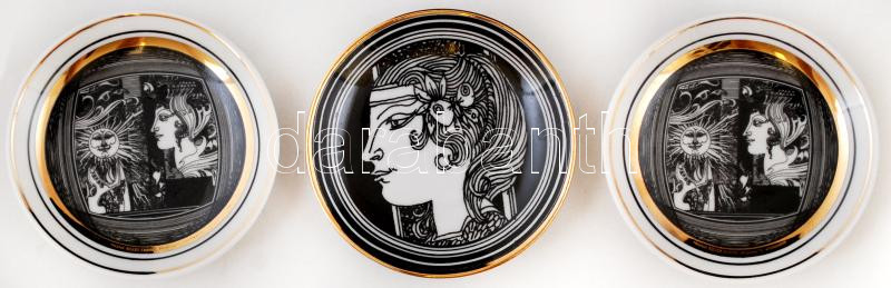 Hollóházi Szász Endre által tervezett porcelán kis tálkák, matricás, jelzett, hibátlan, 3 db, d: 8 cm