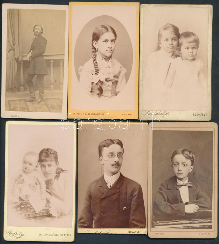 cca 1880-1930, Ferenczy István (1792-1856) szobrász, a 19. századi magyar szobrászat kiemelkedő alkotójának leszármazottai, Sándy, Harmatzy, Hegyeshalmy ect. család hagyatékából: kabinetfotó, keményhátú,szép állapotúak, hátoldalon feliratozva, 19db.