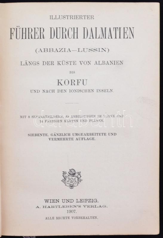 Description: Illustrierter Führer durch Dalmatien (Abbazia - Lussin) längs der Küste von Albanien bis Korfu und nach den ionischen Inseln. Bécs és Lipcse., 1907. Hartleben. 233 p. Kiadói aranyozott egészvászon-kötésben. Számos képpel és térképpel.
