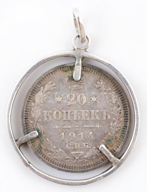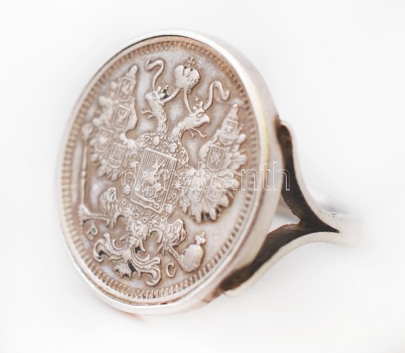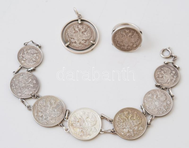 cca 1910-1916 Orosz ezüstpénzekből készült ékszer szett. Karlánc, medál, gyűrű. / Jewellery set made of Russian silver coins. 34g