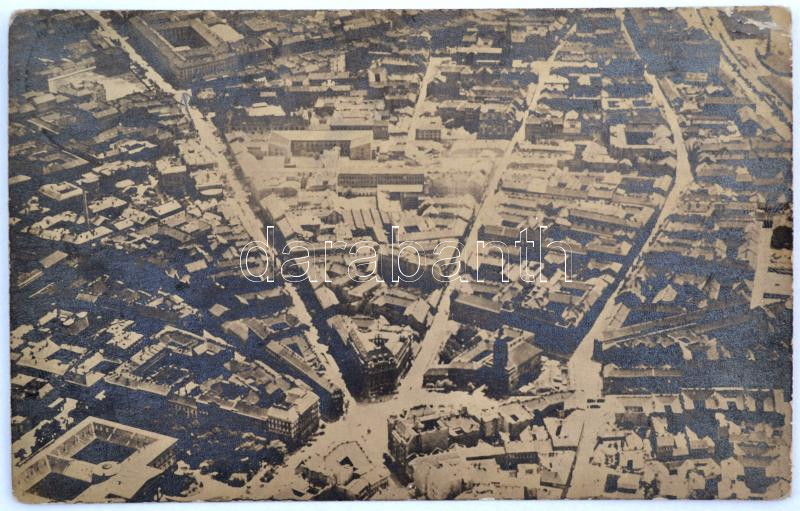 1920 Korai légifelvétel Budapestről: Kálvin tér, Bakáts tér, belső Ferencváros, fotólap, postán megküldve, 9×14 cm / 1920 An early aerophoto of Budapest: Calvin Square, Bakáts Square, inner Ferencváros, sent via post, 9×14 cm