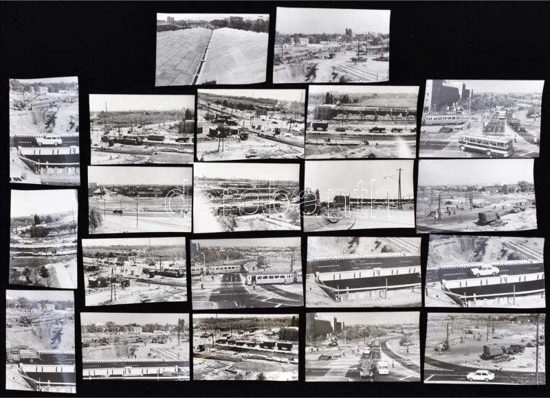 1969 Budapest, Örs vezér tér, aluljáró és metró állomás építése, 21 db feliratozott fotó, 9x14 cm