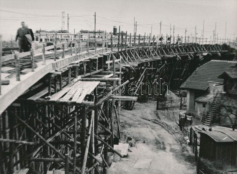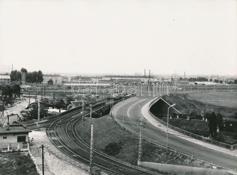 1973 Budapest, Albertfalvai kitérőnél épülő és az elkészült felüljáró,...