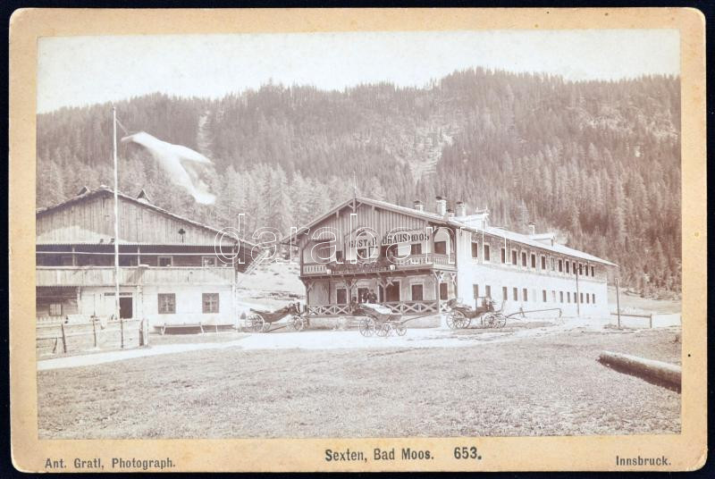 cca 1890 Dél-Tirol, Sesto / Sexten Bad Moos fürdő és fogadó eredeti fo... https://www.darabanth.com/en/24-Major-auction/24.1/Art-and-collectibles/Photo~9555/cca-1890-Del-Tirol-Sesto-Sexten-Bad-Moos-furdo-es-fogado-eredeti-foto-Anton-Grafl-Innsbru~II1289523