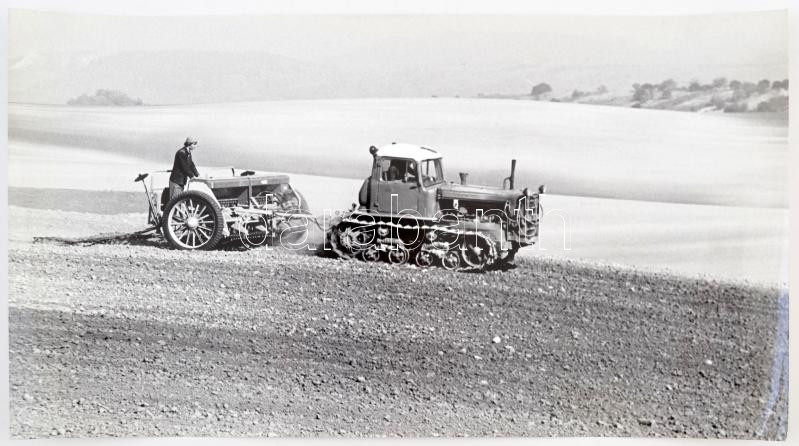 cca 1965 Schütz István: Gépi vetés, feliratozott vintage fotóművészeti...