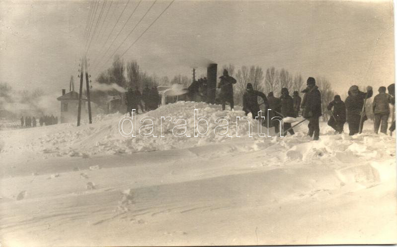 1931 Fonyód, Vasútállomás; a sínek megtisztítása a hóakadálytól, Bellainé fényképész photo