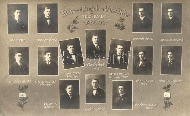 1914-15 Kassa, Jogakadémiai Kör tisztikara, Studentika; Szamossy Feren...