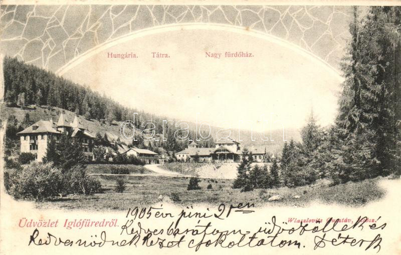 Iglófüred, Hungária, Tátra, Nagy fürdőház, kiadja Wlaszlovits Gusztáv ...