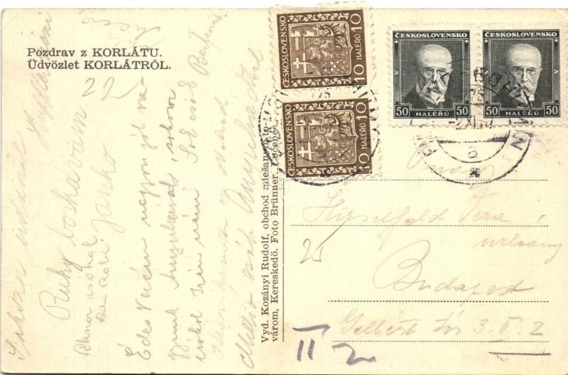 Korláti, Korlát; kereskedés, utca, vasútállomás; kiadja Kozányi Rudolf...