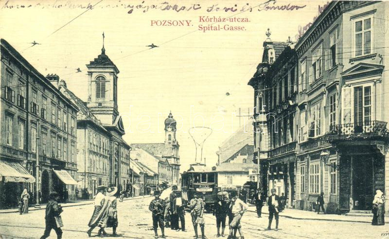 https://www.darabanth.com/en/24-Major-auction/24.1/Hungarian-postcards/Slovakia~9441/Pozsony-Bratislava-Korhaz-utca-az-5-os-villamos-a-Vasarter-fele-Spitalska-ulica-Hospit~II1283840