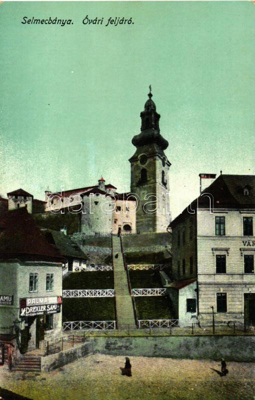 Selmecbánya, Banská Stiavnica; Óvári feljáró, Drexler Samu üzlete, kia...