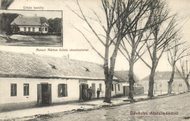 Alsósimánd, Urbán kastély, Messer Márton üzlete utcarészlettel / castl...