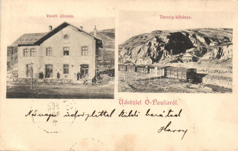 Ópálos, Ópaulis, Paulis; vasútállomás, Tauszig-kőbánya / railway stati...