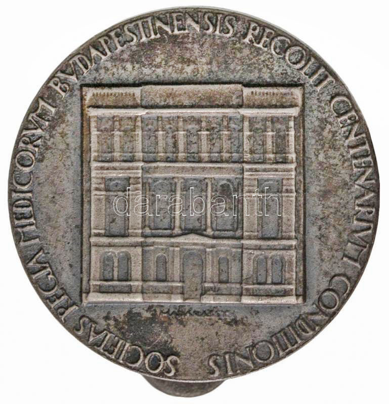 Hungary 1937. "Centenary of the Royal Society of Physicians of Budapest" metal button badge. Sign.: Walter Madarassy (20mm) C:XF patina