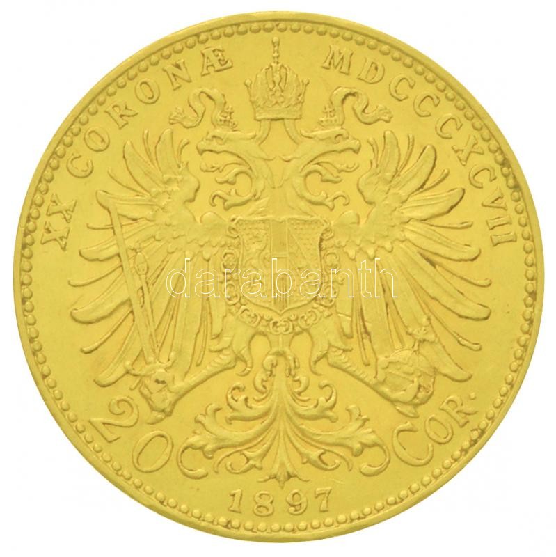 Austr... https://www.darabanth.com/en/24-Major-auction/24.1/Numismatics/Gold-coins-and-commemorative-medallions~9544/Ausztria-1897-20K-Au-Ferenc-Jozsef-6-78g0900-T2-kis-ph--Austria-1897-20-Corona-Au-Franz-~II1292275