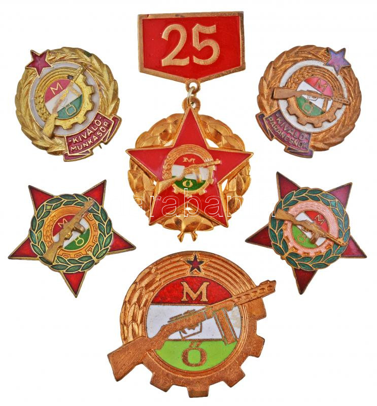 6db munkásőr jelvény, több klf, egyik eredeti tokban T:2