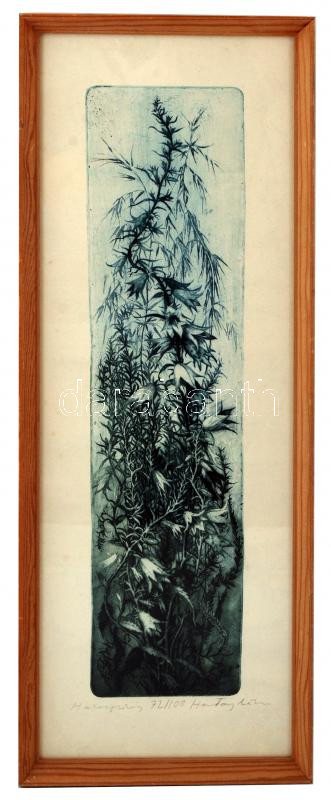 Hertay Mária (1932-): Harangvirág. Rézkarc, papír, jelzett, üvegezett keretben, 58×15 cm